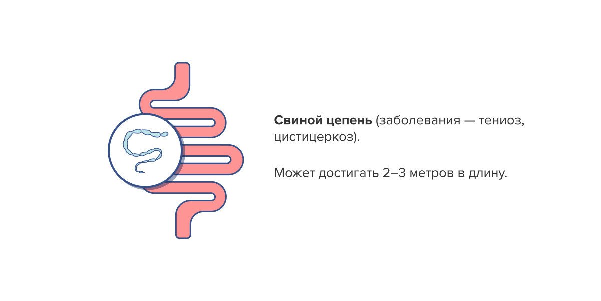 Личинки этого паразита передаются через свинину и могут вызывать цистицеркоз, вследствие которого поражаются ткани кишечника, а потом центральная нервная система, другие органы, в том числе головной мозг.