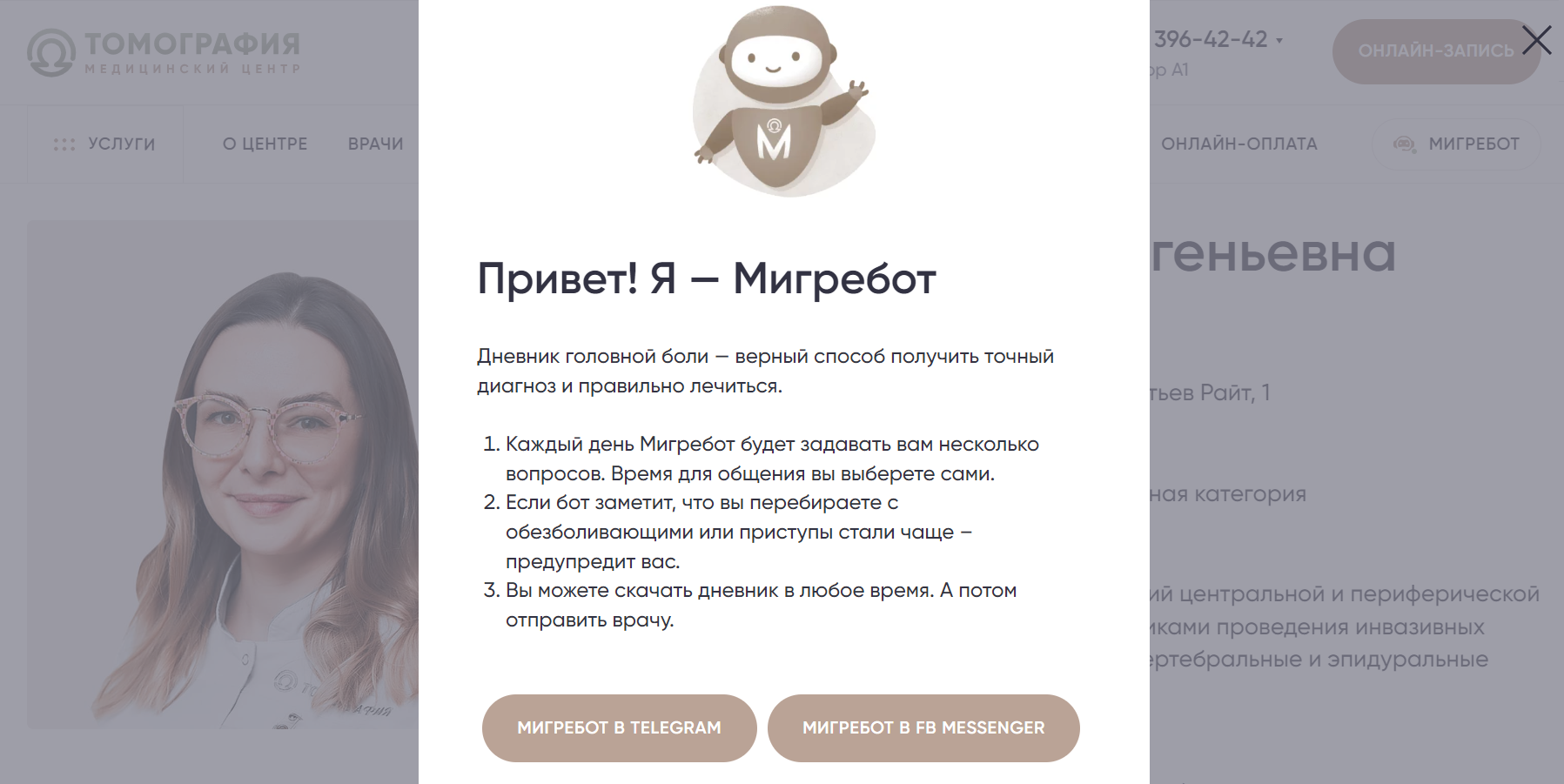 — На сайте центра есть ссылка на приложение «Мигребот». Для чего его можно использовать?