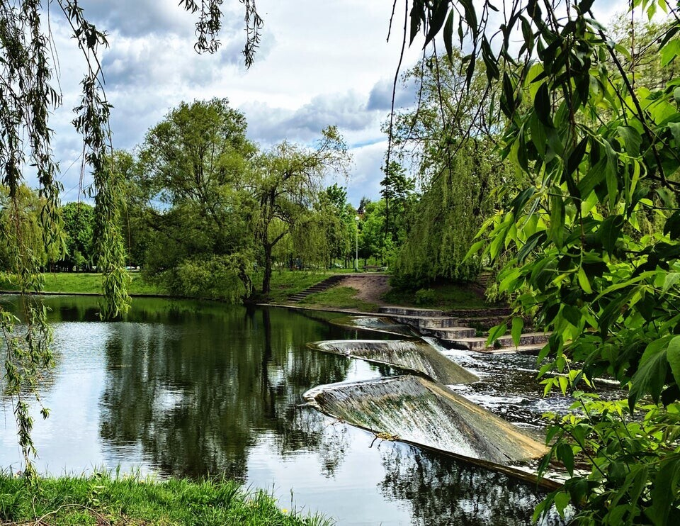 При этом Антоновский парк — один из старейших в Минске, его открыли в 1928-м. Канал здесь оборудован необычными извилистыми водопадами, набережную обрамляют ивы.