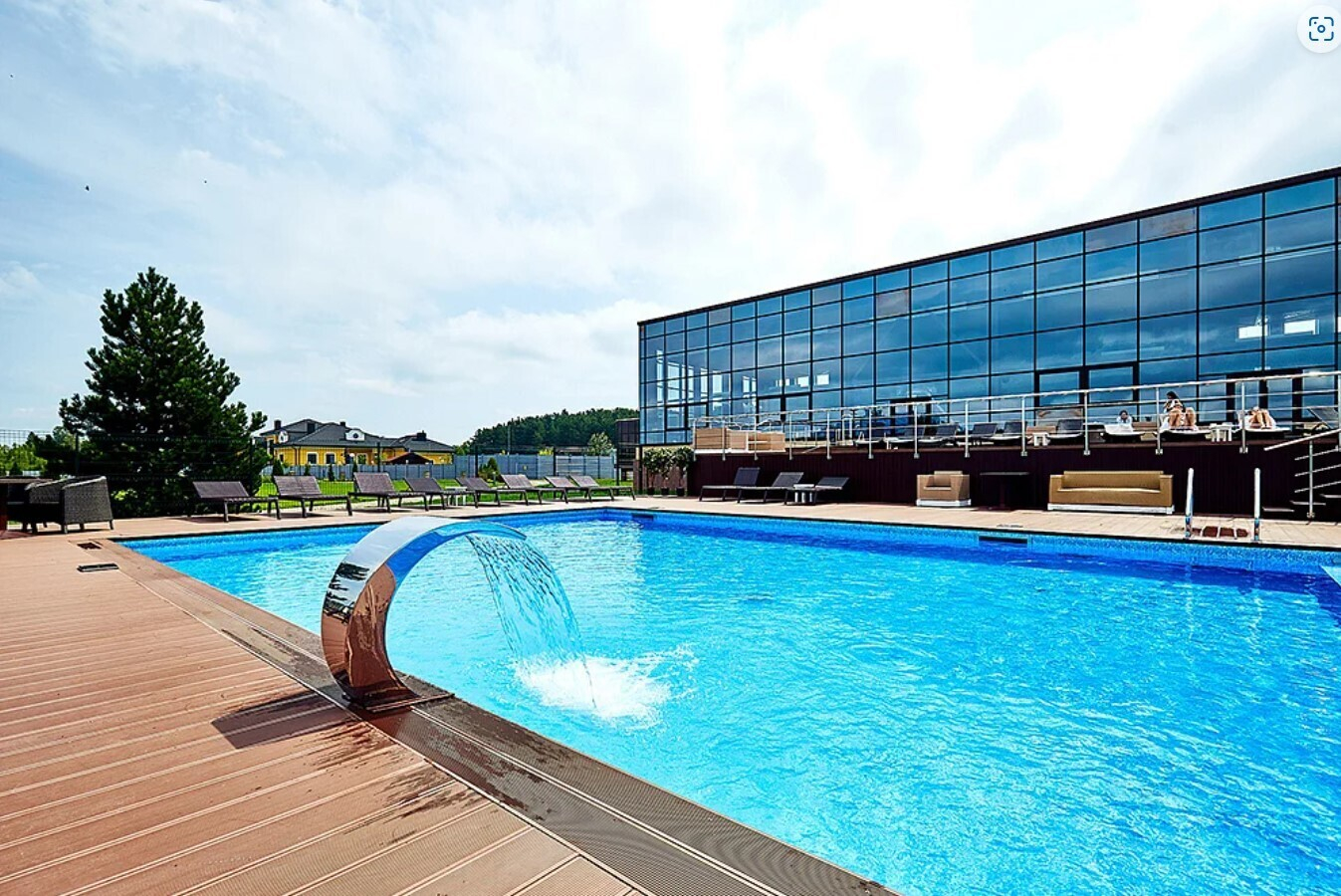 Бассейн расположен в летней зоне отдыха спортивного комплекса.