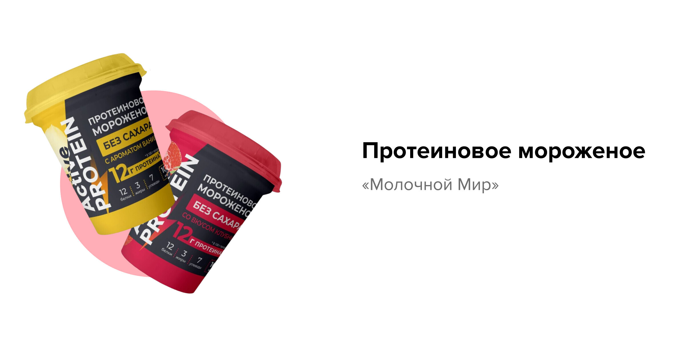 То самое первое порционное протеиновое мороженое в Беларуси: 12 г белка, без сахара (используется сукралоза).