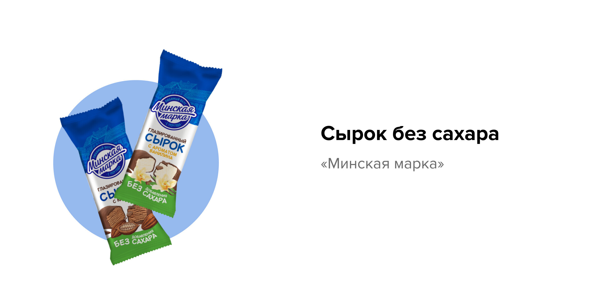 Вместо сахара в этот сырок кладут, опять же, мальтит, у которого низкий гликемический индекс и на 40% меньше калорий, чем у сахара.