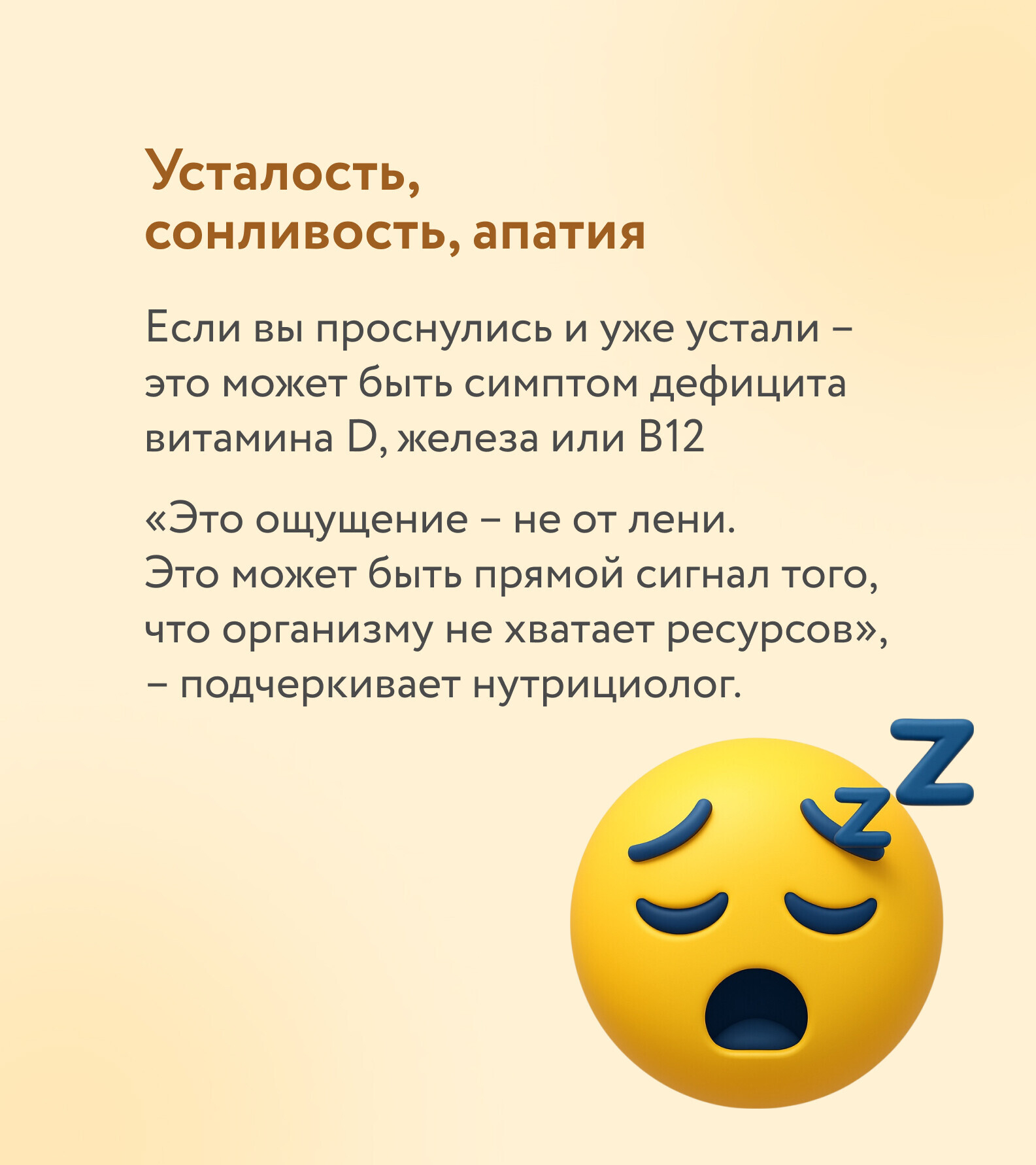 Часто дефицит витаминов и минералов начинается незаметно – и первые симптомы легко списать на усталость или возраст. Но организм подает сигналы, которые важно не игнорировать.