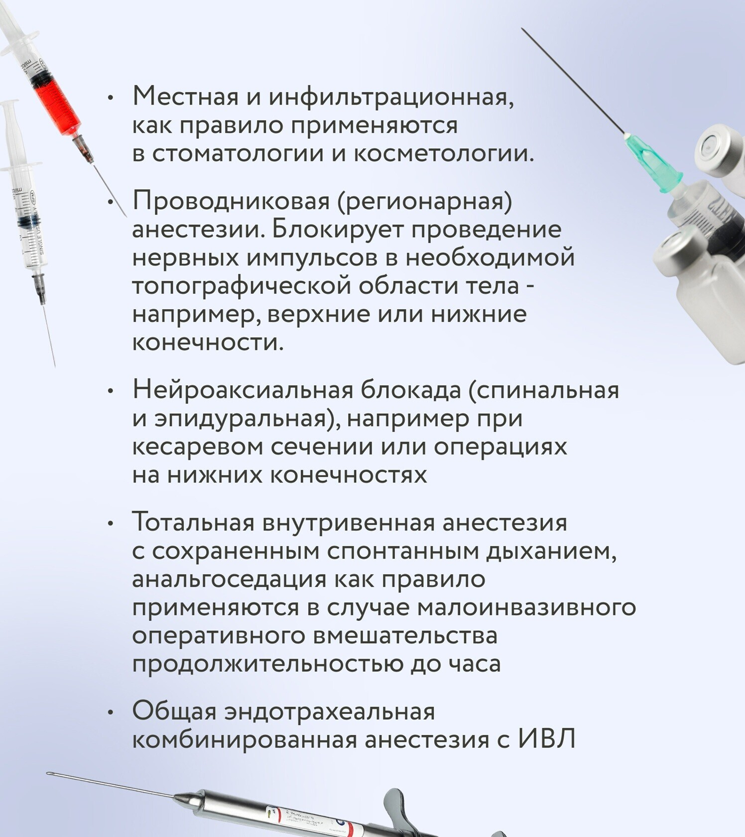 Все это – не «один укол, чтобы уснуть», а сложная система подбора препаратов и дозировок, которая учитывает возраст, вес, состояние здоровья и тип операции.