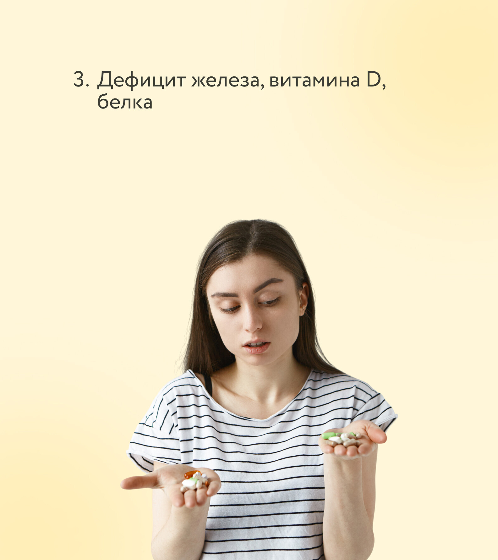 Самостоятельно назначать себе витамины, БАДы или «чудо-ампулы» трихолог не советует. Без понимания причин выпадения такие эксперименты чаще всего не работают, а иногда даже усугубляют ситуацию.