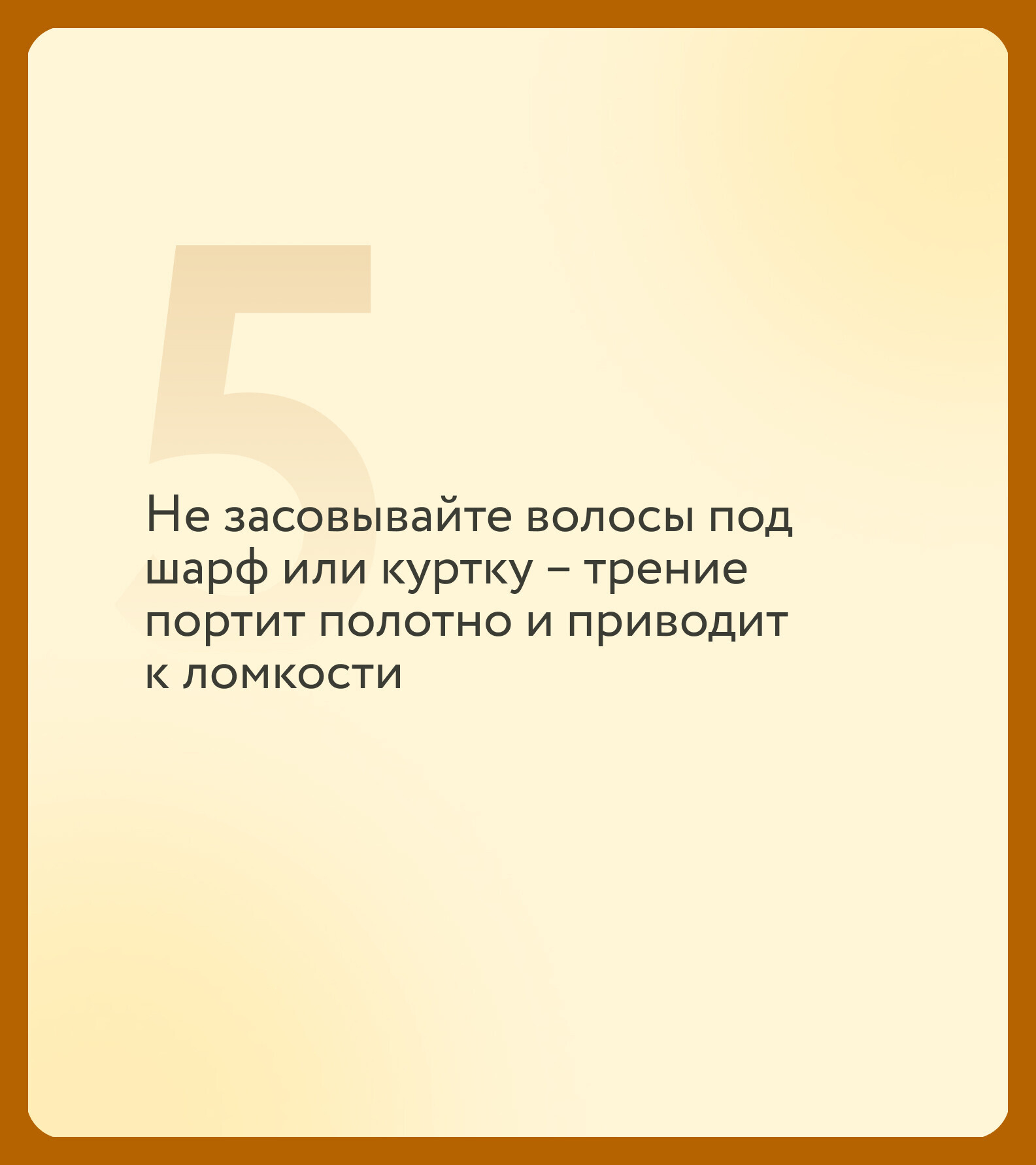 И главный совет напоследок – относитесь к волосам бережно. Не трите их полотенцем, не ложитесь спать с мокрой головой и не прячьте под шарф.