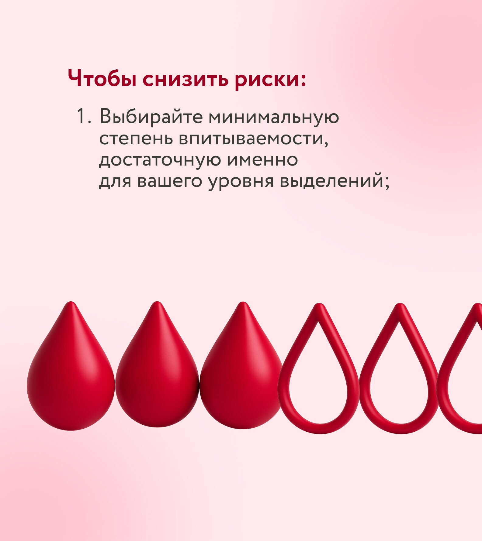 «Материалы современных тампонов безопасны, если они сертифицированы. Но важно помнить: тампон впитывает не только менструальные, но и естественные влагалищные выделения, что может подсушивать слизистую», – объясняет врач.