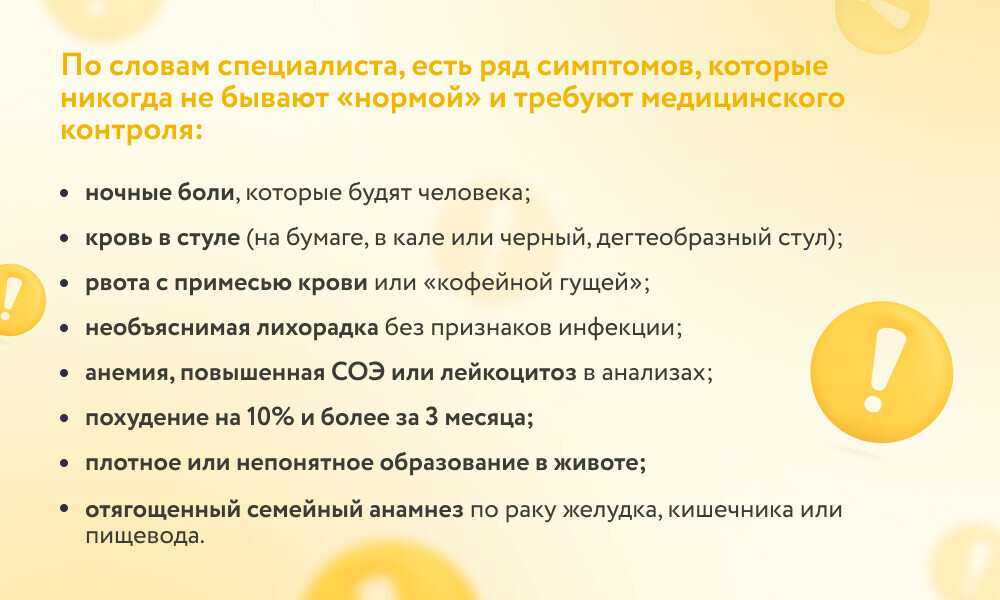 «Это признаки органической патологии, которые требуют обращения к врачу», – подчеркивает гастроэнтеролог.