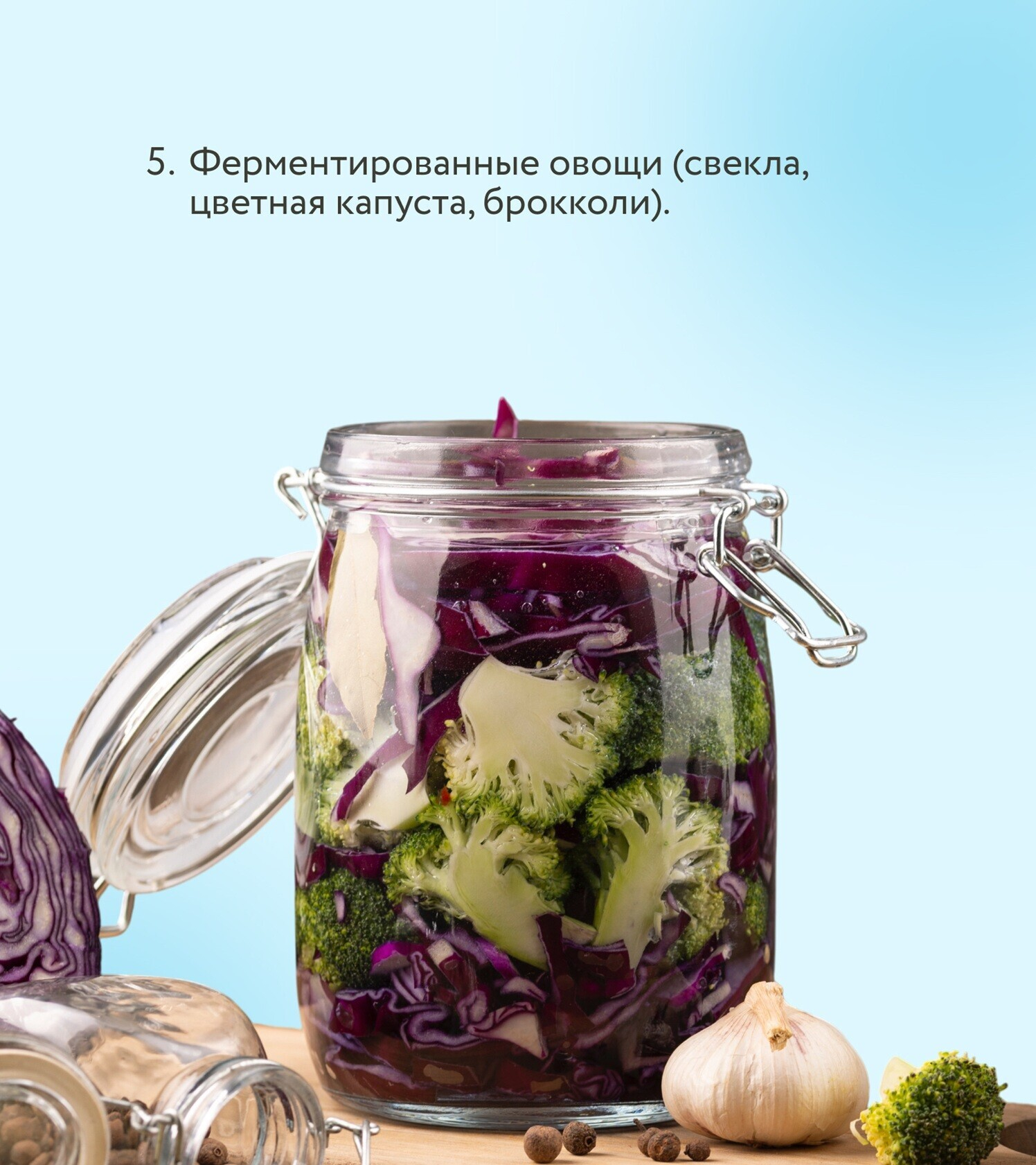 Ферментированные продукты – это продукты, прошедшие естественное брожение: квашеная капуста, бочковые огурцы, комбуча (чайный гриб), йогурт, ряженка, кефир, а также ферментированные овощи вроде свеклы или цветной капусты. Они помогают полезным бактериям расти и поддерживают стабильность микробиома.