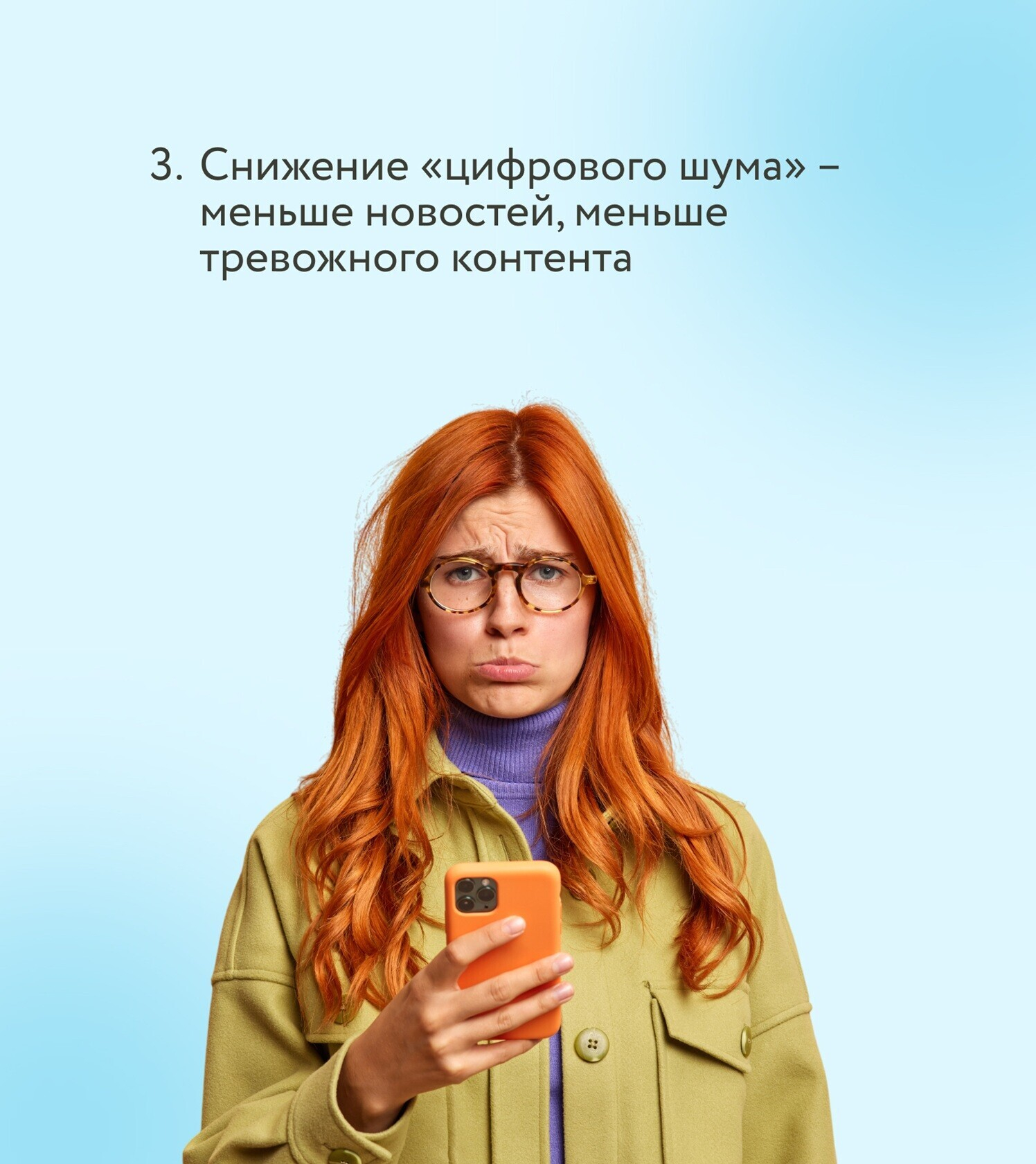 «Важно делать детокс от соцсетей, следить за уровнем усталости, больше отдыхать и использовать дыхательные практики. Это напрямую улучшает состояние желудочно-кишечного тракта».