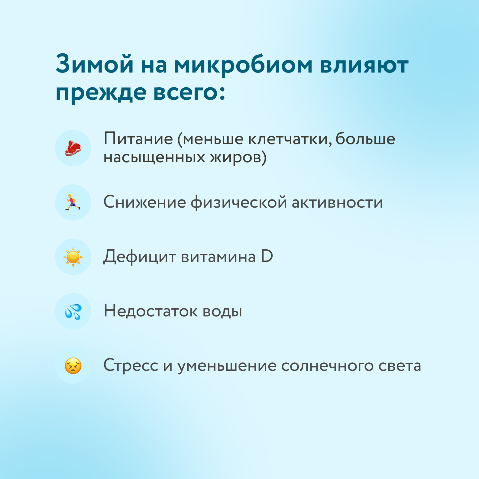 Поэтому поддержка микрофлоры зимой – это не только про комфорт пищеварения, но и про устойчивость к сезонным инфекциям.