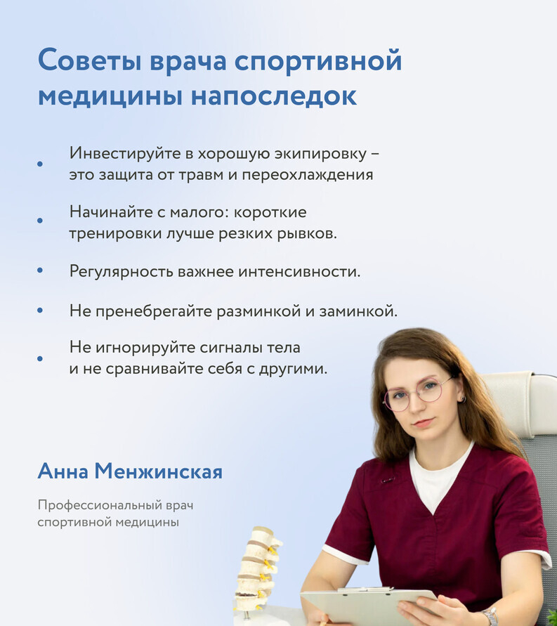 Зимние тренировки требуют от организма больше ресурсов, чем занятия в теплое время года, поэтому подготовка становится неотъемлемой частью безопасности. Анна Менжинская объясняет: главное – понимать, как на холод реагируют мышцы, сосуды и дыхательная система, и корректировать нагрузку под эти условия.