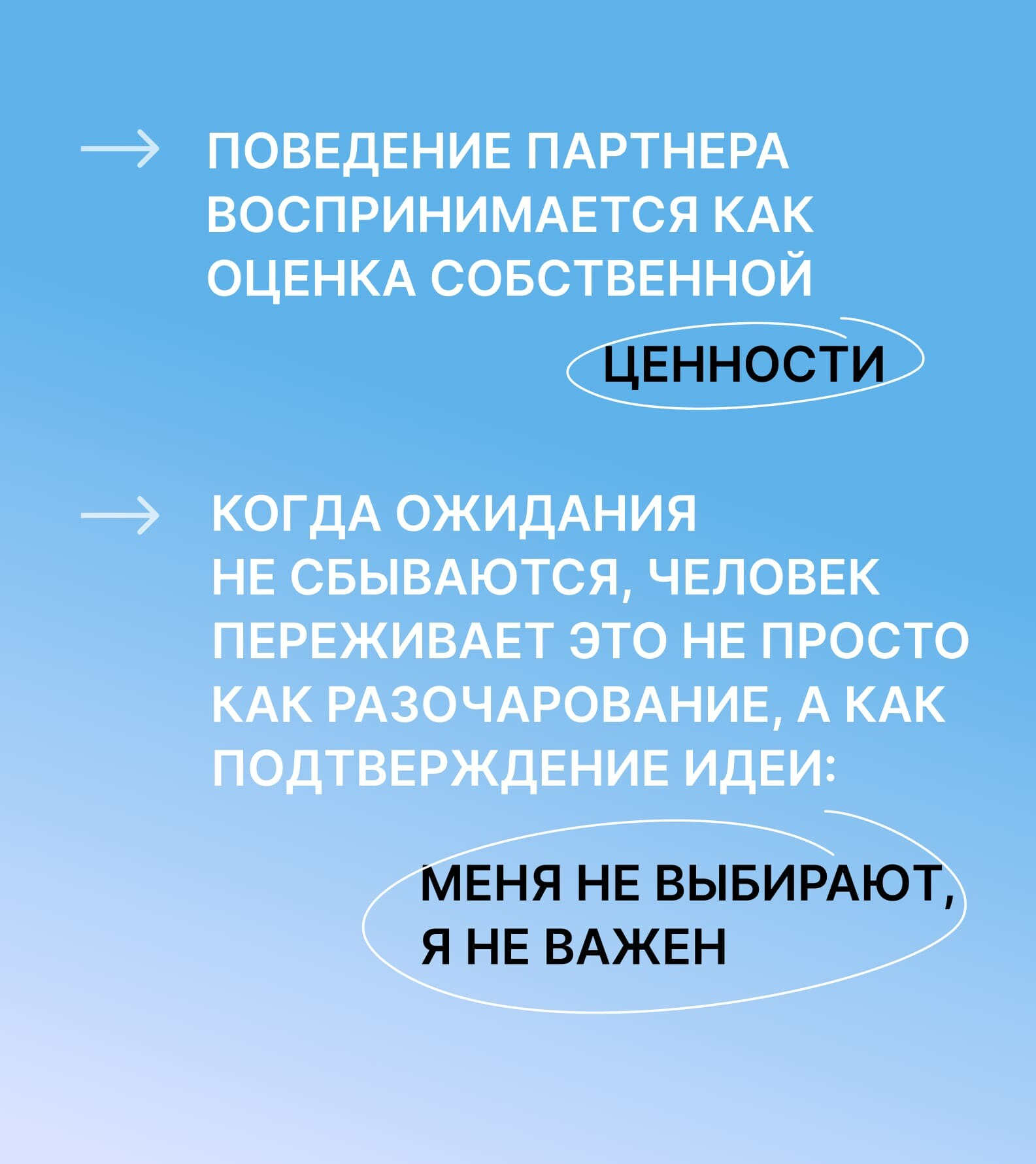 «Когда ожидания не сбываются, человек переживает это не просто как разочарование, а как подтверждение идеи: меня не выбирают, я не важен».