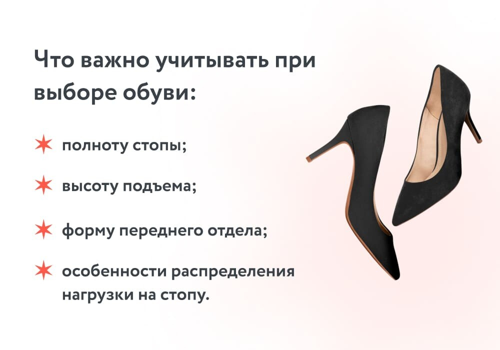 Высота каблука и перепад между пяткой и носком напрямую влияют на распределение нагрузки по стопе.