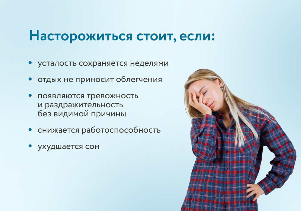 Чаще всего все начинается с ощущения, что силы «куда-то делись». Но не после тяжелого дня, а при обычной нагрузке.