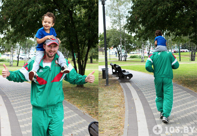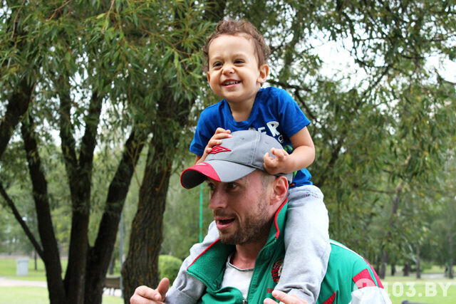 — Естественно, если папе нужна аэробная нагрузка, 200 метрами вместе с сыном он не обойдется. Что делать в таком случае: сажаем ребенка на шею, но предварительно учим его, как на шее нужно правильно сидеть и держаться за вас. В качестве рычагов управления он может использовать ваши уши, волосы или одежду.