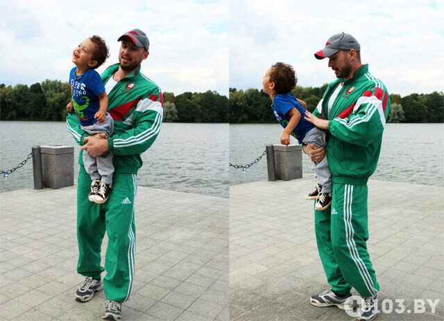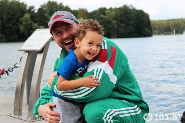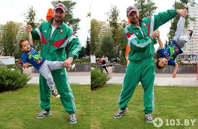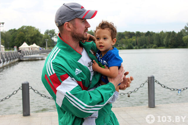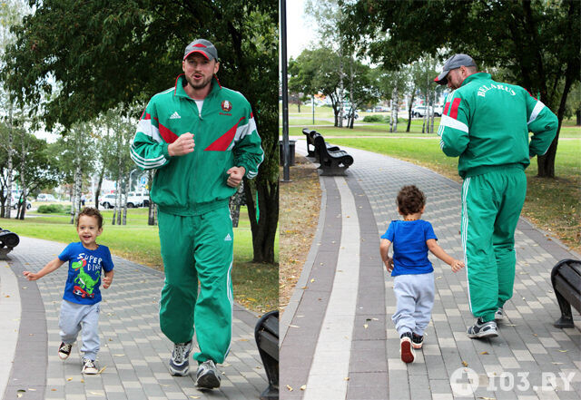Год назад мы уже рассказывали вам о том, как Денис тренируется вместе с годовалым сыном Дамиркой. Сейчас парень подрос — ему уже 2 года — он занимается бегом не сидя в хипсите, а уверенно, как настоящий бегун, рядом с отцом на дорожке и получает нереальное удовольствие от динамической гимнастики.