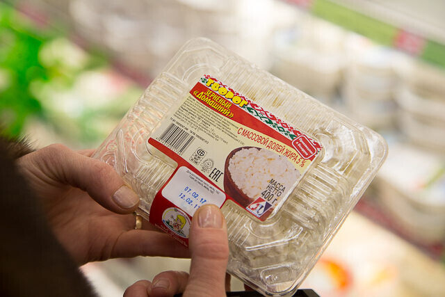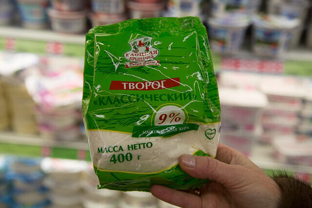 Прежде, чем подойти к витринам с творогом, Лариса объясняет, что предпочтительнее выбирать средний по жирности творог. Например, 9%. Из обезжиренного или слишком жирного продукта (14% и выше) кальций в организме усваивается хуже.