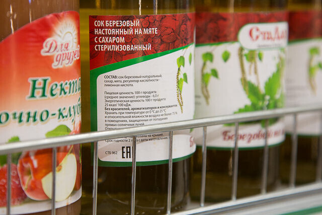 Идем дальше, внимательно изучая витрины, — впереди «сок березовый, настоянный на мяте с сахаром». Специалист смотрит на состав и говорит, что сахар здесь явно лишний.