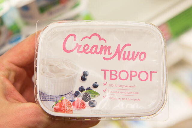 Изучая витрины, взгляд нашего фотографа падает на творог в красивой упаковке. Мы просим Ларису прокомментировать.