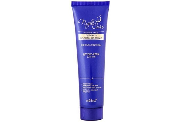 — Еще один мой любимчик — детокс-крем для ног Night Care. Пошла покупать косметику и заметила необычную упаковку. Почитав состав, обратила внимание на содержание натуральных компонентов: чайное дерево и эвкалипт. Отшелушивающий компонент — молочная кислота. Еще один плюс — возможность использовать крем в ночное время.