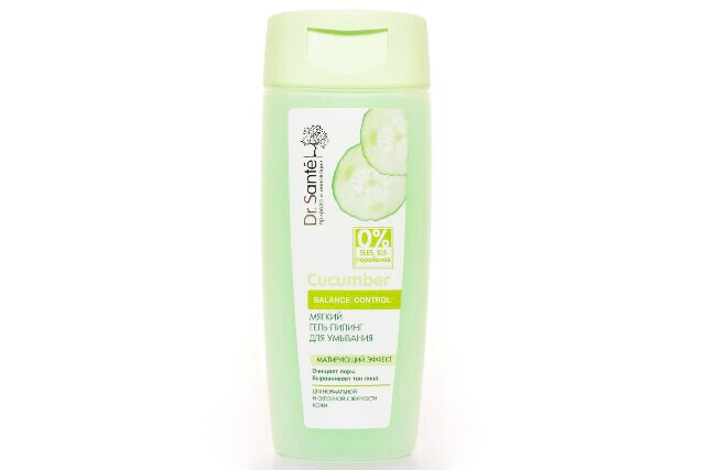 2: — Также мне очень нравится гель-пилинг для умывания Dr.Sante Cucumber Balance control. Покупаю уже не первую баночку. Делала перерыв, пробовала другие, но вернулась к нему.
