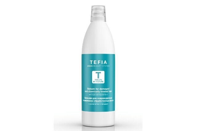 1 этап — шампунь и бальзам итальянской марки Tefia для поврежденных волос и волос, подвергавшихся химической обработке (например, осветленных или обесцвеченных).