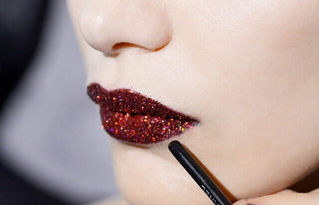 Девушки с цветотипом «зима» (когда цвет кожи сильно контрастирует с цветом волос и бровей) могут позволить себе нанести глиттер даже на яркие губы. В их случае это не будет выглядеть вульгарно.