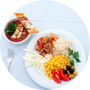 — Здесь я бы убрала суп. Выше я писала почему. Кроме того, часто в заграничных супах много масла или сливок, что делает блюдо слишком сытным. Мы с вами уже видим на этот раз две тарелки, так что главное правило нарушено. Если все-таки хочется супа, просто добавьте к нему овощной салат и обед будет сбалансирован.