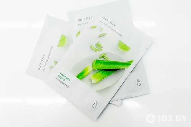 Тканевая маска для лица с экстрактом алоэ вера INNISFREE (около 4 руб.). Увлажняет, смягчает, успокаивает кожу.