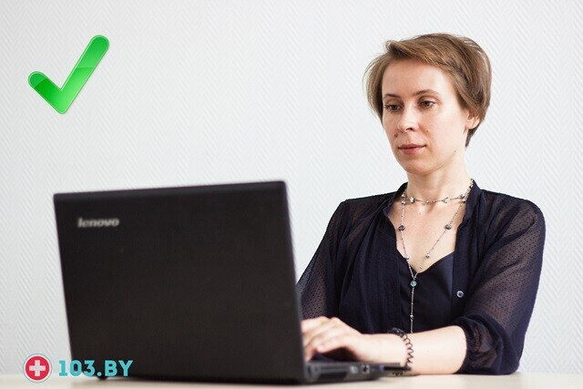 — Начните с малого. Отрегулируйте экран компьютера так, чтобы вам не требовалось напрягать шею при работе с ним.