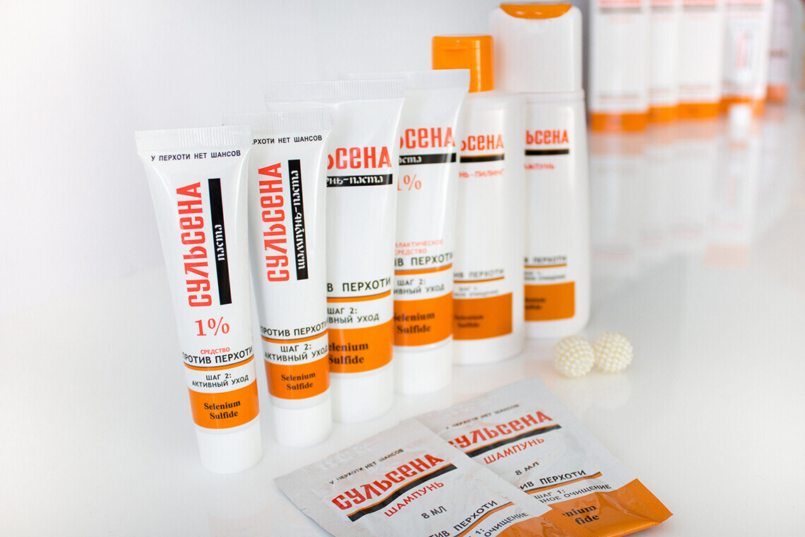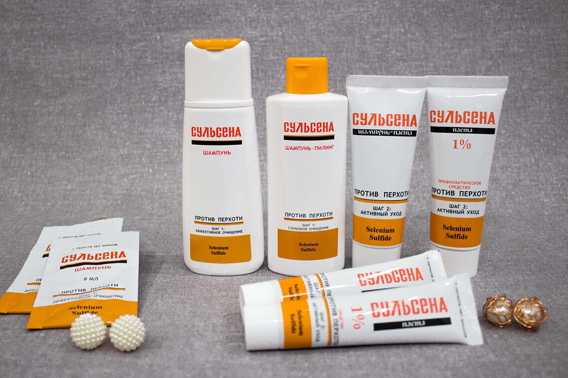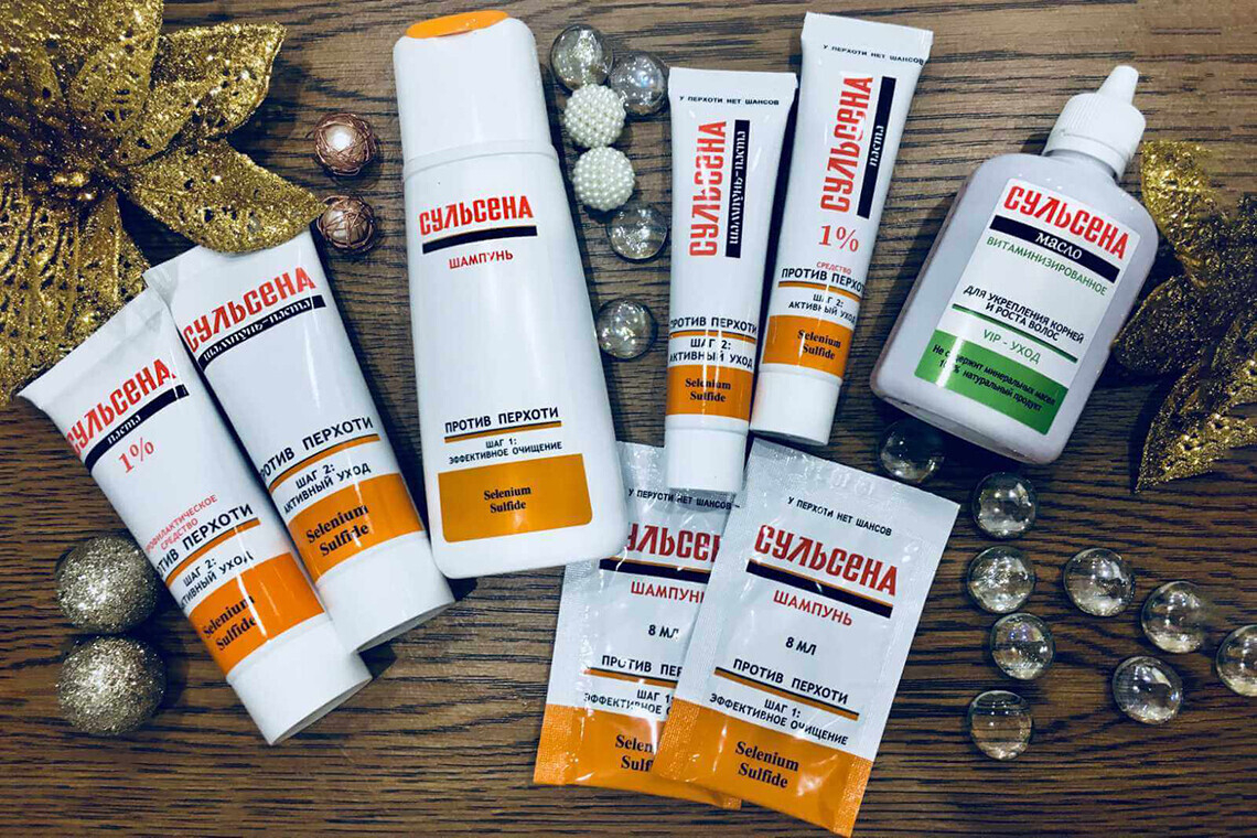 Средства по уходу за волосами и кожей волосистой части головы серии «Сульсена» созданы на основе активного себорегулирующего компонента дисульфида селена. Он может оказывать направленное действие на основную причину образования перхоти — дрожжевой грибок Pityrosporum Ovale, известный также