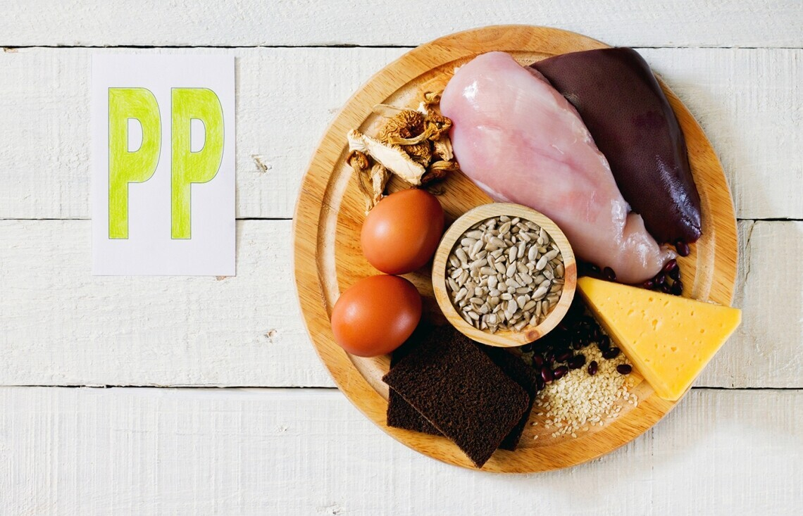 - Активизирует метаболизм, поскольку участвует в высвобождении энергии из основных питательных веществ, а также других витаминов, особенно витамина В2.