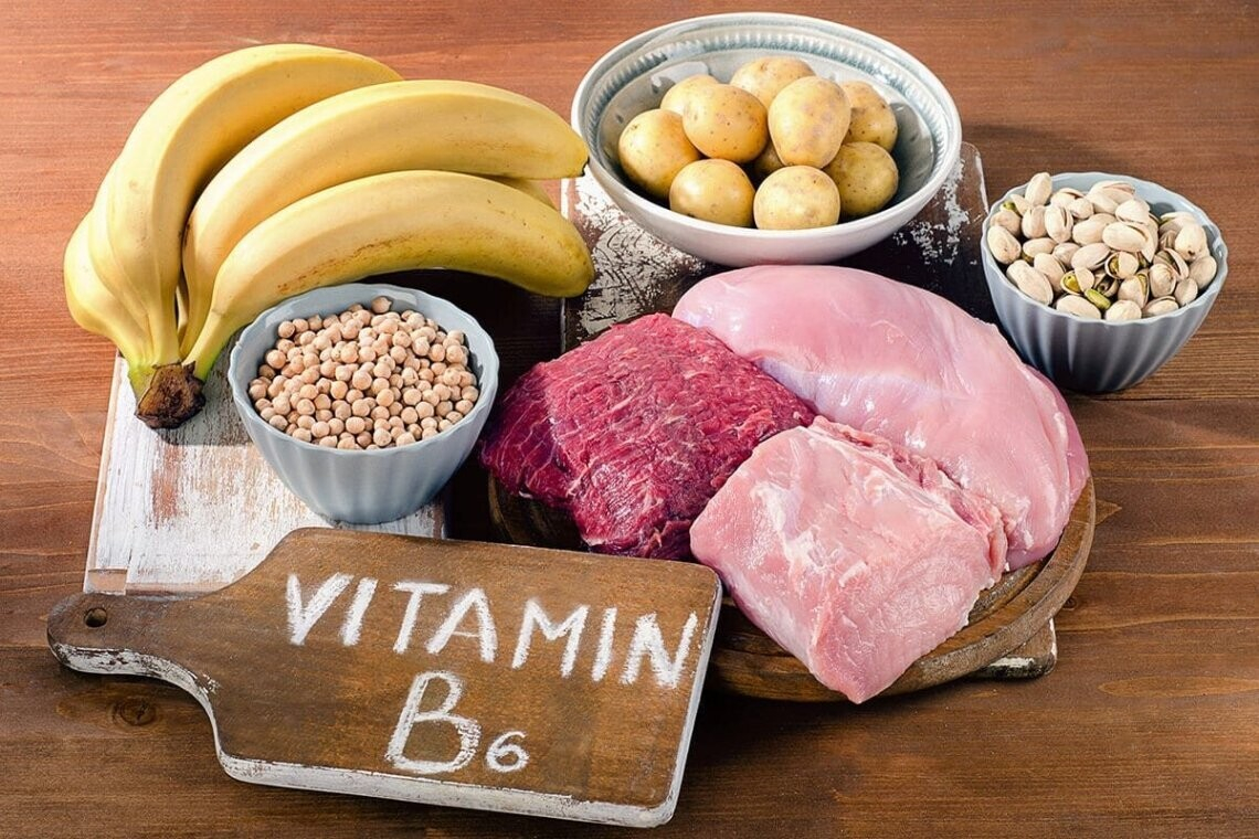 Печень, орехи, мясо птицы, рыба, дрожжи, авокадо, брокколи, паприка, бананы, свинина и говядина, хлеб, семена, яичный желток, бобовые.