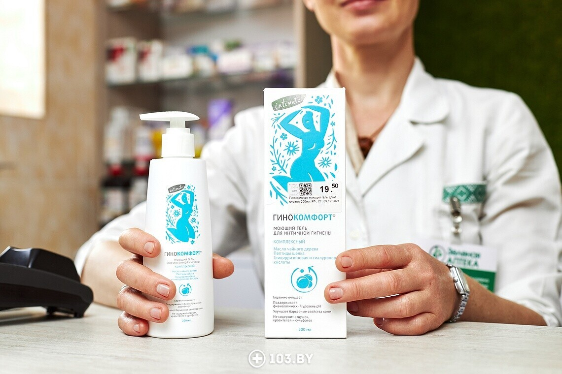 — Тое, якую форму сродку абраць, — справа звычкi i пажаданняў чалавека. Склад жа разглядзiм на прыкладзе iнтымнага мыйнага гелю «Гiнакамфорт».