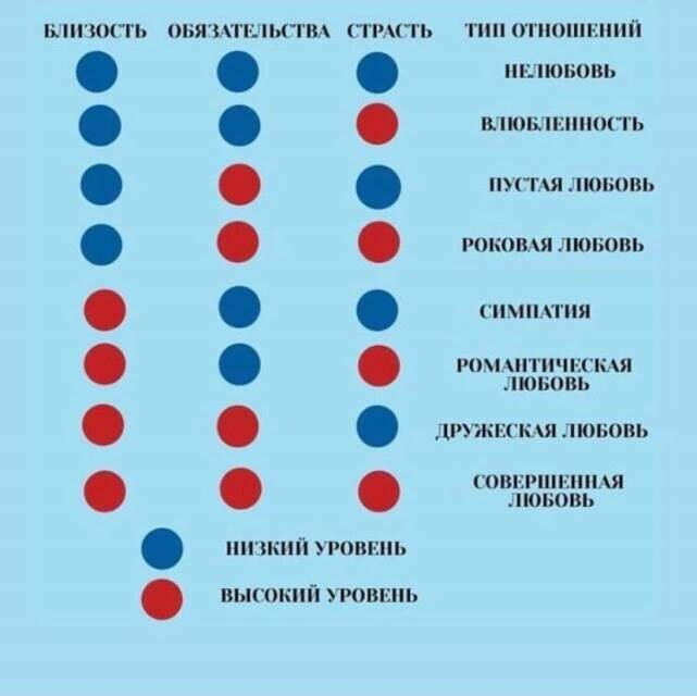 Кстати, американский психолог, профессор психологии Оклахомского университета Роберт Стернберг разработал простую трехфакторную теорию любви, которая помогает определить тип отношений.