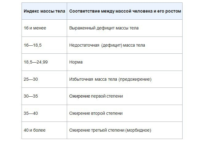 В соответствии с рекомендациями ВОЗ, разработана следующая интерпретация вычислений (в таблице ниже). Но стоит помнить, что каждый человек индивидуален. Ваши показатели могут считаться для вас нормой, несмотря на итоговый результат. Если вы в чем-то сомневаетесь, посоветуйтесь с врачом.