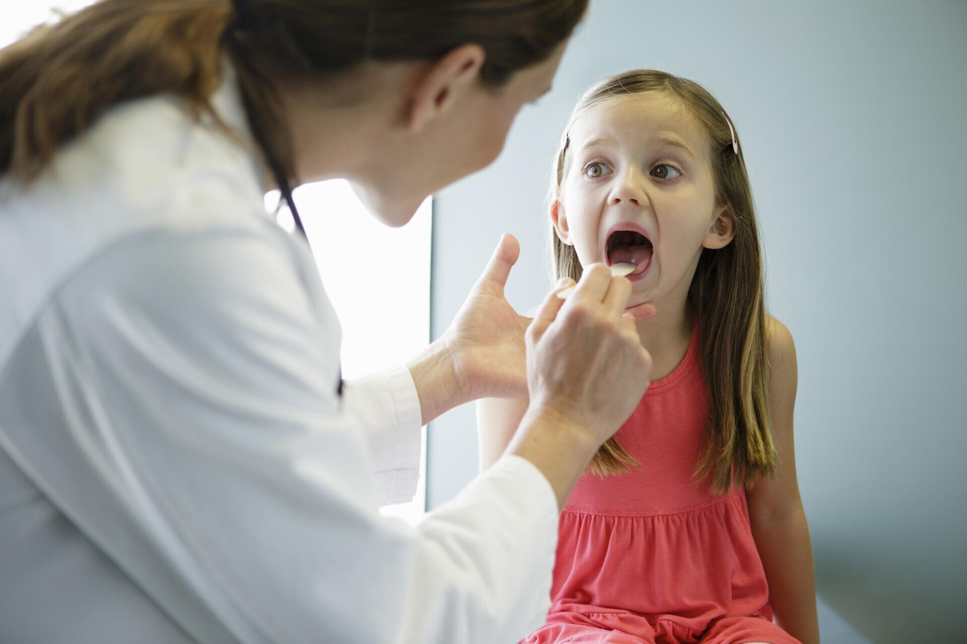 Прием у педиатра начинается с опроса родителей, осмотра горла маленького пациента с помощью зеркала либо фарингоскопа, пальпации лимфоузлов.