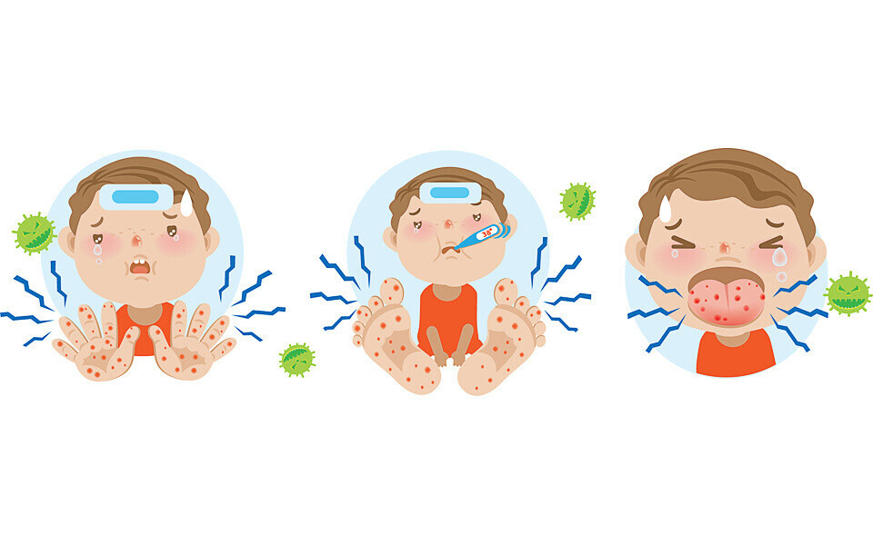 У детей инфекция Коксаки часто протекает бессимптомно. Чаще всего выявляют герпангину, синдром «рука-нога-рот». Но ребенок является заразным на протяжении всего заболевания и в течении 1-2 недель после выздоровления.