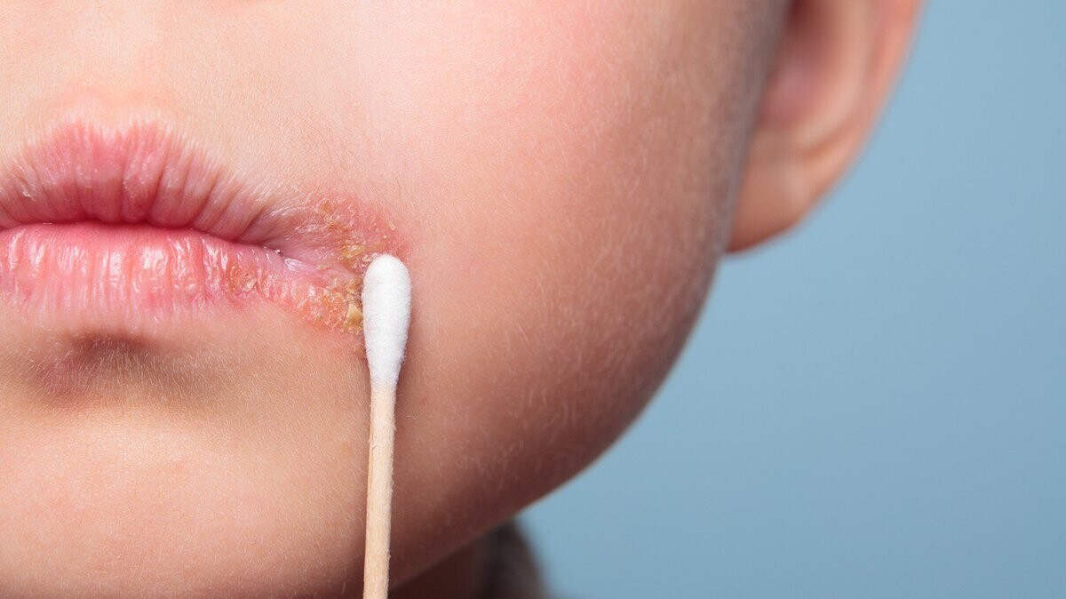 Чаще всего поражает область губ и слизистую оболочку рта. Реже — область вокруг глаз, руки. Передается бытовым или контактным путем при пользовании зараженными предметами, физическом контакте. Характеризуется высыпаниями в виде мелких пузырьков с водянистым содержимым. Через время пузырьки лопаются, подсыхают, покрываются корочками. После отпадания корочек некоторое время остаются красные следы, затем кожа приобретает обычный оттенок. Могут образовываться язвочки, если произошло присоединение бактериальной инфекции.