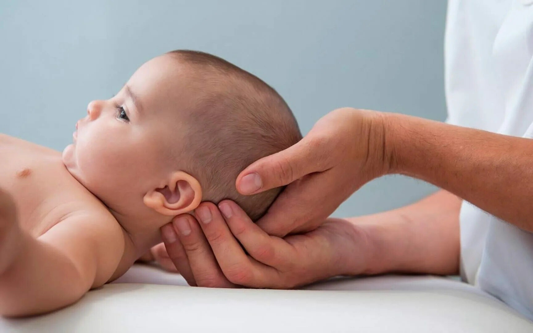 При обнаружении проявлений кривошеи нужно немедленно обратиться к педиатру, так как неправильное положение головы может вызвать тяжелые последствия.