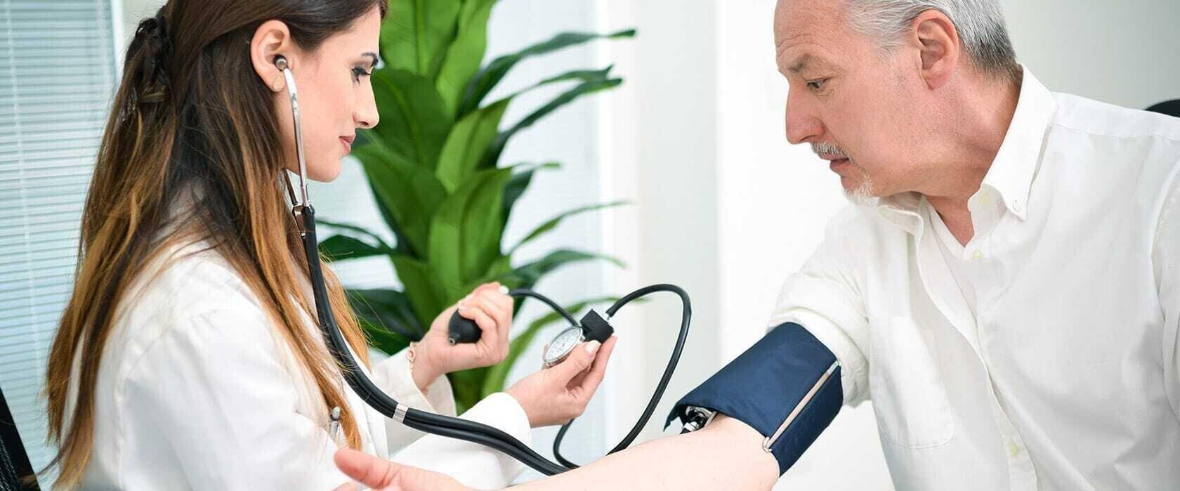 - Общий осмотр, измерение артериального давления, пульса, прослушивание тонов сердца.