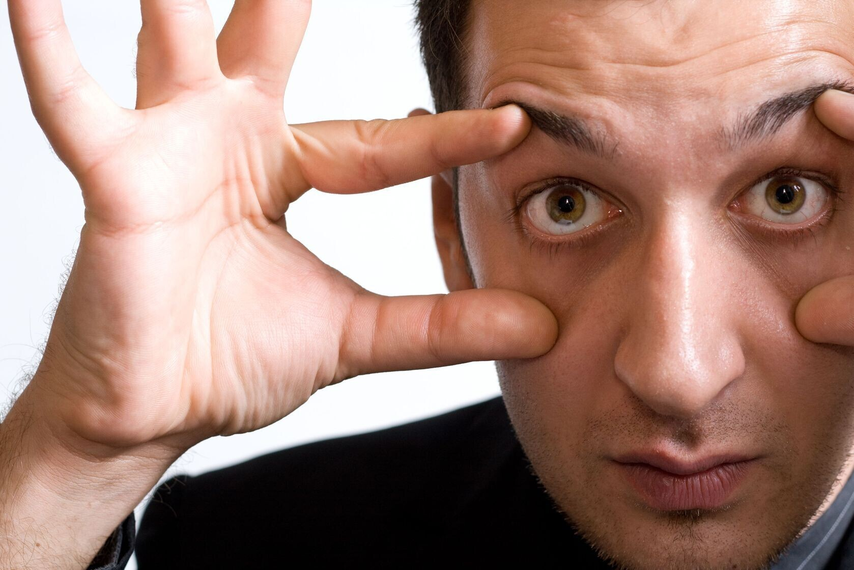 Односторонний или двухсторонний птоз невозможно не заметить. Он проявляется неестественным расположением века или обоих век. Они могут полностью прикрывать зрачок или немного опускаться на глаз. Человеку для того, чтобы хорошо видеть приходится постоянно напрягать мышцы лба, приподнимая брови или закидывать голову назад, из-за чего такую позу называют звездочетной, так как люди напоминают визуально астронома, усиленно разглядывающего далекие звезды на небе.