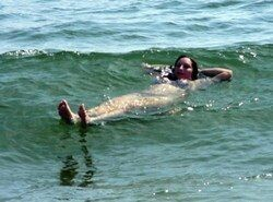 4. Если берег далеко, то лягте в воде на спину и наберите в легкие побольше воздуха.
