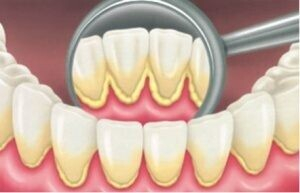 Это так называемый наддесневой камень, который хорошо виден даже неспециалистом. Он может быть темный, желтоватый или даже белый. Консистенция у него твердая или глинообразная и он легко удаляется стоматологом при помощи специального инструмента.