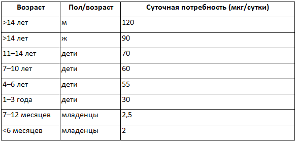 Ориентировочно суточная потребность в витамине К рассчитывается из пропорции 1 мкг на 1 кг веса тела. С пищей обычно поступает даже больше данного витамина, чем нужно.