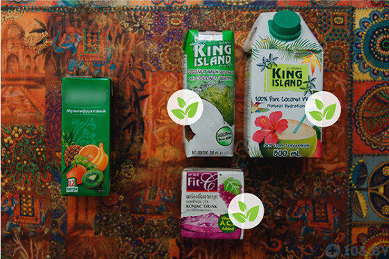 Вместо сока нам предложили несколько вариантов более здоровых напитков. Среди таковых — кокосовая вода (100% натуральная, гипоаллергенная), напиток на основе растения конжак (еще один хит среди приверженцев здорового питания и диабетиков), а также микс кокосового молока и кокосовой воды. В последнем мы нашли к чему придраться: тут 3% сахара, но количество полезных качеств с лихвой покрывает этот недостаток.