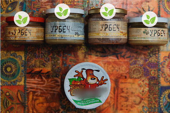 Среди сладостей в магазине Vegetus нас особенно заинтересовал продукт родом из Дагестана. Урбеч, или пастообразная масса из растертых семян, на своей родине используется как лечебное или питательное средство — в зависимости от состава. На полках в магазине для веганов мы нашли урбеч из миндаля, лесного ореха, арахиса, абрикосовых косточек, тыквенных семечек и разрекламированного в последнее время чиа. В составе продукта один ингредиент — полезный и очень вкусный, как понимаете. Шоколадно-ореховая паста очень сильно проигрывает как минимум в первом качестве.