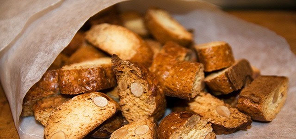 Насыпать на доску 100 гр. муки, сделать углубление и разбить одно яйцо, всыпать 80 гр. сахара, добавить 80 гр миндаля и все тщательно перемешать. скатать колбаску диаметром 4-5 см. Можно использовать кешью, добавлять изюм, клюкву. Выложить на пекарскую бумагу на противень. Разогреть духовку до 180 градусов и выпекать 40-45 минут. Следить, чтобы тесто не потемнело очень сильно. Достать из духовки и сразу разрезать на части по 0,5-1 см толщиной (так как миндаль режется только когда теплый). Полученные печенья выложить на противень и запекать еще 10 минут.