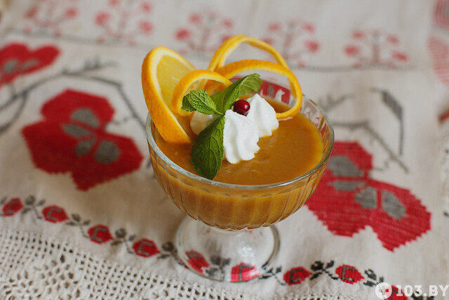 — Десерт можно назвать модным сегодня словом «смузи». Подавать его лучше со взбитыми сливками или мороженым. Есть вариант украшения белковым кремом. Десерт понравится даже тем, кто не любит тыкву. Секрет в том, что в напитке не чувствуется яркого вкуса осеннего овоща. Нотки корицы и насыщенный цитрусовый вкус полностью скрывают тыкву.